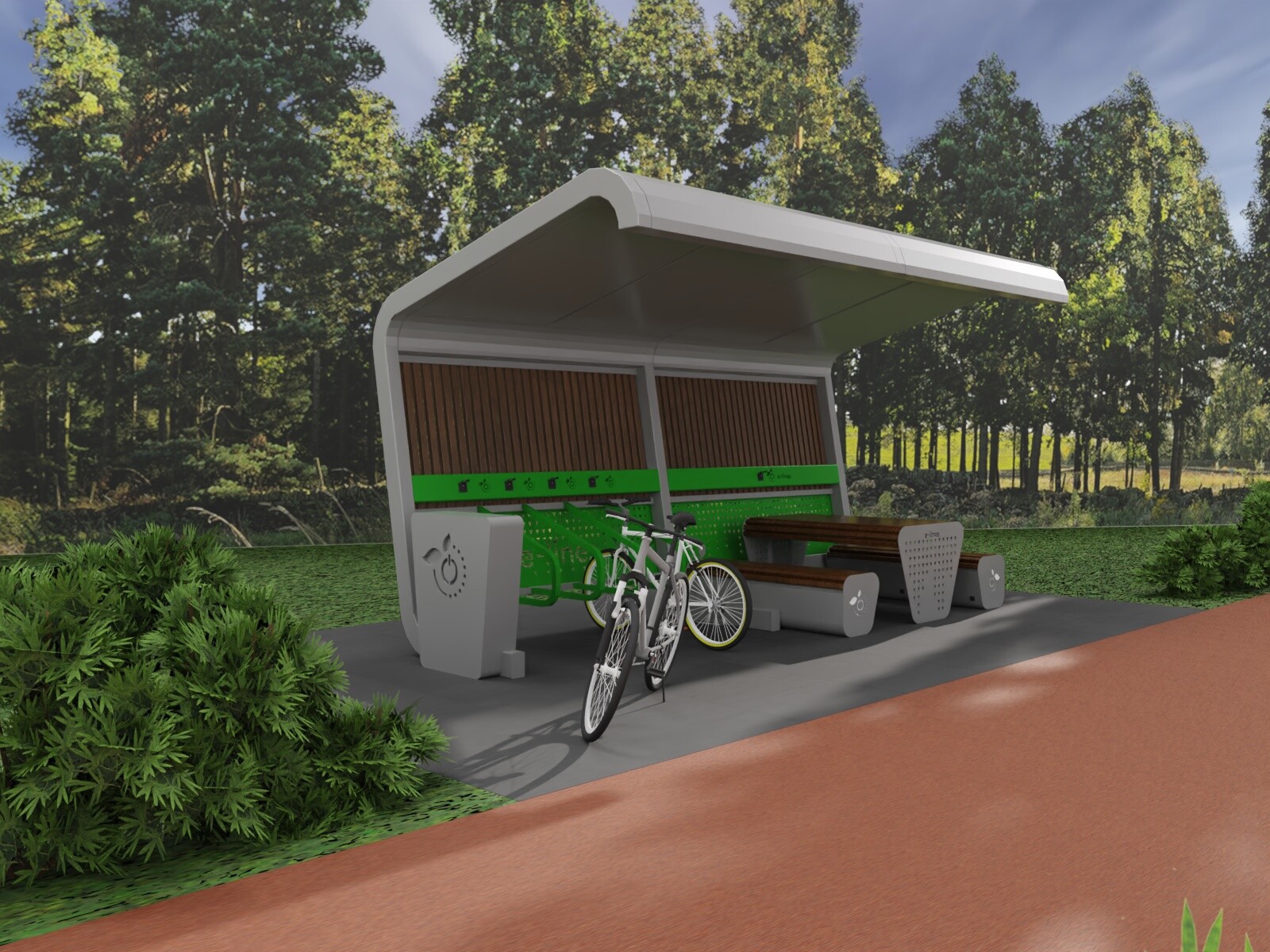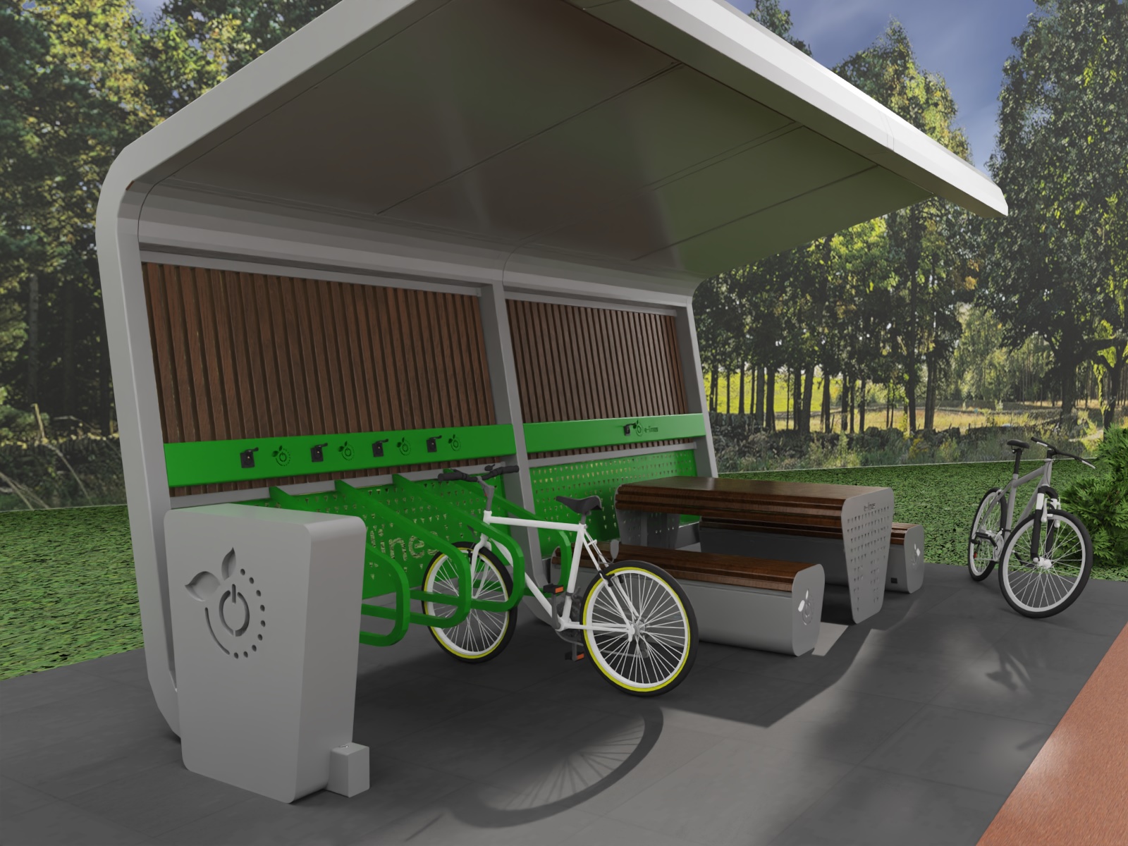 BikePort to stacja ładowania rowerów elektrycznych, stworzona z myślą o miejscach użyteczności publicznej, ścieżkach rowerowych i branży HoReCa. Dzięki niezależnym portom i fotowoltaice, umożliwia ładowanie rowerów elektrycznych nawet w najbardziej odległych miejscach bez dostępu sieci energetycznej, tj. górskie szlaki, parki krajobrazowe, leśne polany, miejsca rekreacyjne nad jeziorami.