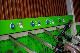 Stacje ładujące posiadają zabezpieczenia, chroniące rowery podczas ładowania.